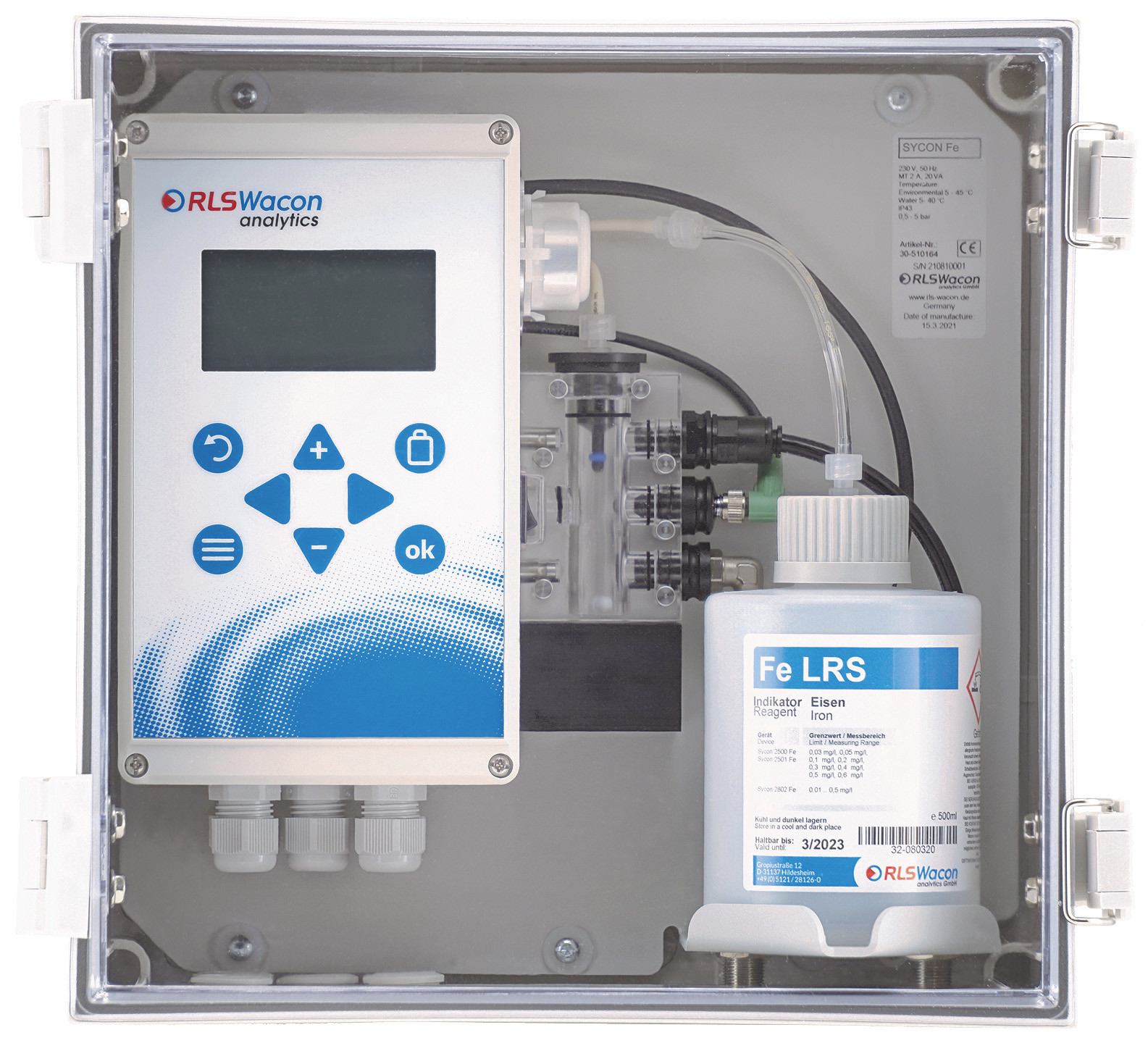 Das SYCON Fe ist ein Analysegerät zur Messung von freiem Eisen in einer Wasserprobe. Das Online- Analysegerät besitzt neben den üblichen Relais und Eingangskontakten eine 20 mA Strom- sowie RS485 Schnittstelle mit Modbus RTU Protokoll.